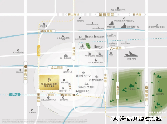 立体交通:黄金十字中轴,绿汀路TOD。枫揽华庭位于绿汀路、文二西路、文一西路、运溪高架等交通干道交汇处,交通便捷。同时,地铁5、16、3号线三站换乘,直线距离约600米,为业主提供便捷的出行选择。