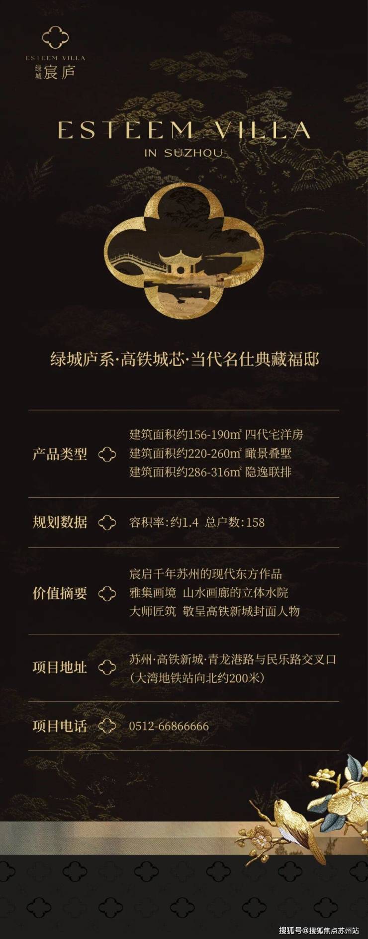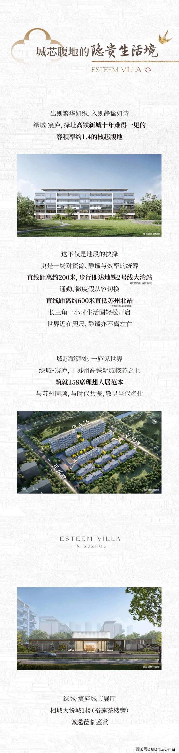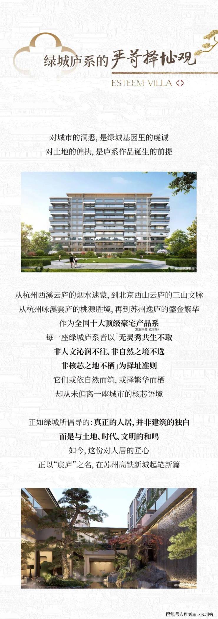 本项目推广名为“【绿城·宸庐】”,备案名为“【锦庐】”,开发公司为【苏州宏相城市建设发展有限公司】;受托管理方:绿城管理;本宣传资料所涉宣传内容,仅作为项目宣传推广使用,不在任何意义上构成开发商的承诺与要约,具体以政府部门审定的规划设计文件及《商品房买卖合同》的约定为准。 本宣传资料印制时间为2025年9月,有效期为1个月,本公司有权对宣传内容进行修改、调整,敬请留意最新宣传资料。本宣传资料所涉及的户型仅供示意参考,具体以政府部门最终审定的图纸和销售合同为准。教育配套信息来源于政府相关规划,仅供参考。学校的名称、建成时间、开办学性质、办学规模、学位设置、开学时间、招生条件、收费标准及招生区域划定等均存在未确定或者调整的可能,出卖人对此不作任何承诺,须以政府教育主管部门及校方的最新政策为准。交通配套信息来源于规划局数据,市政配套信息来源于规划局数据,仅供参考。交通规划设置、市政配套设置不排除因政府规划、政策规定及出卖人未能控制的原因而发生变化,本资料旨在提供相关信息,不代表着出卖人对此作出要约或承诺。本宣传资料对商业的具体业态、开业时间等仅作介绍,不代表出卖人对此作出要约或承诺,具体以经营者实际经营为准。