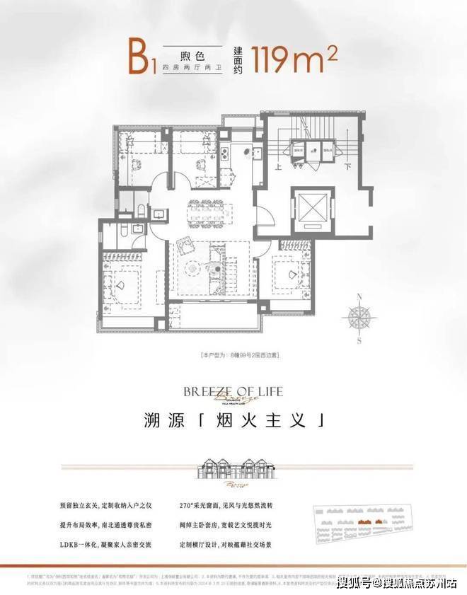 所有户型都做到了三开间朝南+南向双卧+主卧套房设计+270°L型采光面。