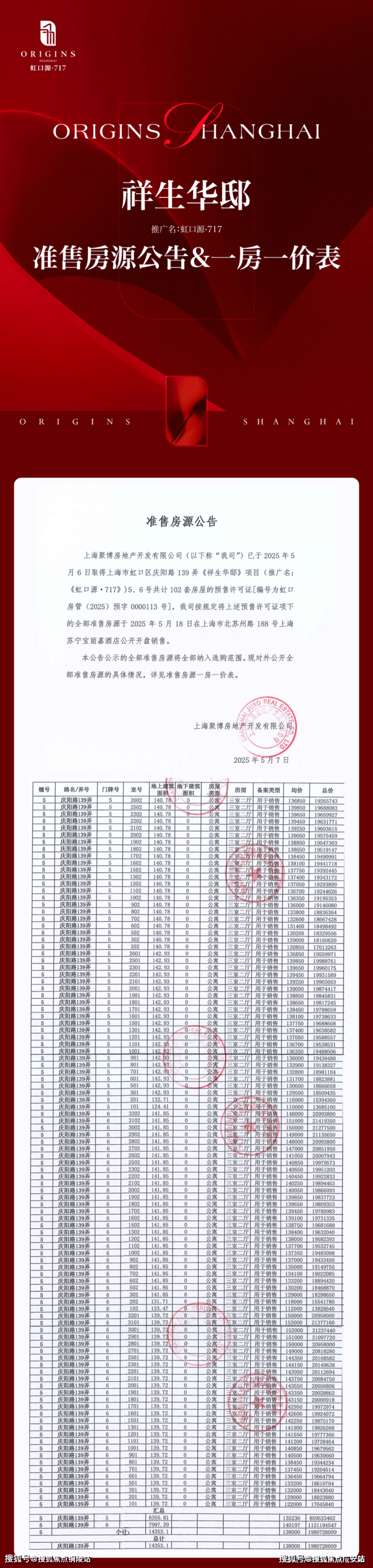 售楼处地址:上海市虹口区庆阳路 79 号(北外滩虹口源·717 接待中心)。