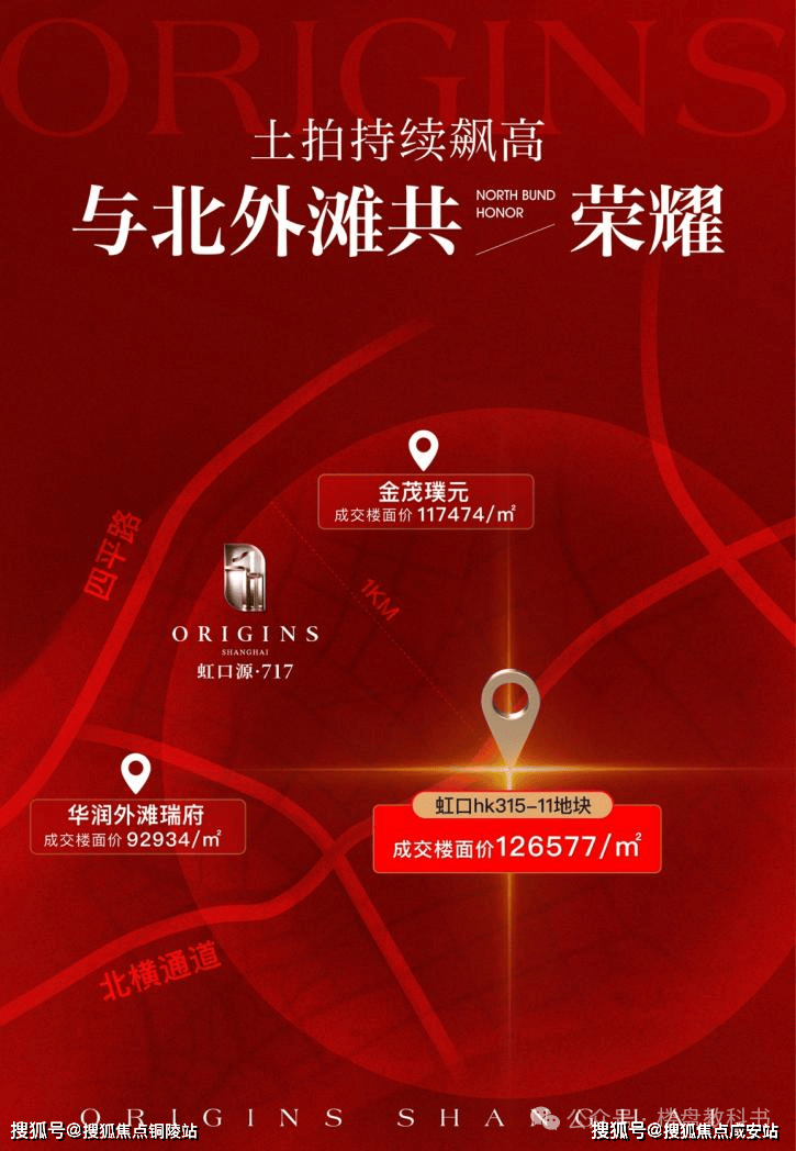 回顾北外滩土拍史,板块地价的跳涨绝非一时喧嚣,而是一步一个脚印,走出了一条漂亮的攀升曲线。2024年11月,华润置地51.36亿拿下北外滩新地块,楼面价92934元/㎡,溢价率11.97%。四个月后,金茂&庆隆以89.64亿元摘得新地,溢价率冲至38.2%,楼面价高达117474元/㎡。再到本次土拍再破纪录的126577元/㎡,每一次落槌,都是对北外滩价值爆发的坚定投票。如今虹口内环再添“地王”新丁,为本就热势难挡的“四平路三兄弟”再加一把“火”,豪宅扎堆,成为上海置业圈内新的热议话题。