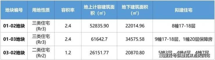 01-03地块,拟建9栋17-18F高层住宅、1栋20F保障房以及若干社区配套用房,规划可售住宅约472套,将推出建面约89-140㎡3-4房;