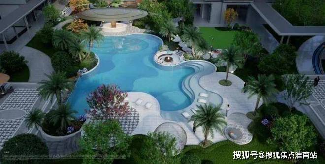 穿门而入,迎宾水院的风景很美,曲径通幽,步移景异。更亮眼的还有异形“蓝宝石”戏水池。