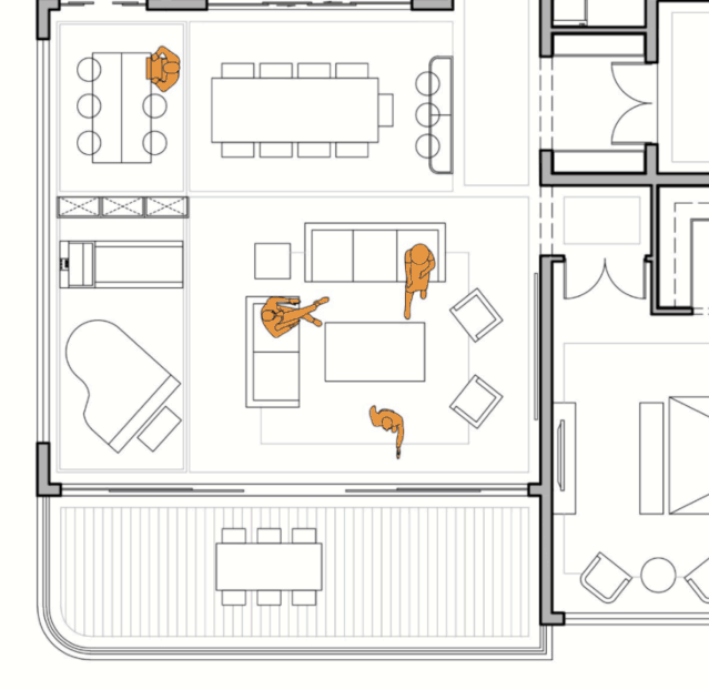 把户型面积切割为168㎡+68㎡两个空间: