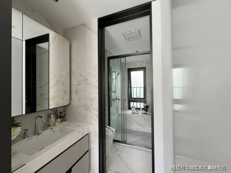招商中旅·观境的解决方案是“零无效空间”。通过整合餐客厨等公共区域厅,将原来南北厅中间的走廊空间融合到使用空间中,减少过道的面积,避免碎片化的空间带来的冗余浪费。大面宽,短进深,餐厅与客厅横向相连,每一平方米都物尽其用,把客厅升级为家庭互动主场。