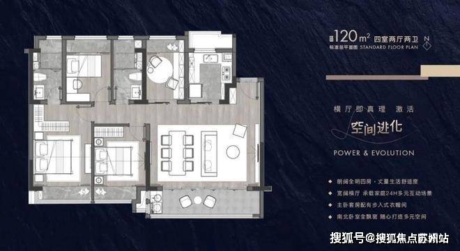 户型配置:建面约105㎡(3房2厅2卫)、120㎡(4房2厅2卫)、132㎡(3+1房2厅2卫)、143㎡(4+1房2厅2卫)