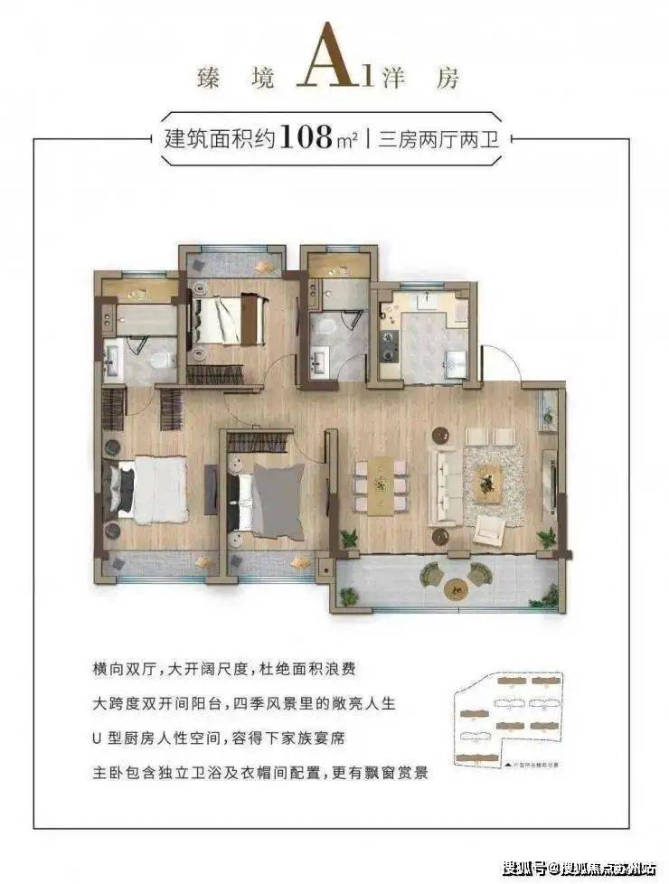 今年年中,领证首开,现场人气居高不下,销售场面十分火爆,目前 还有部分约108㎡户型和底复产品在售。建面约108㎡户型虽然只有百平多一点点,却拥有三室两厅两卫的空间配置, 约6.2m大横厅和跑道式阳台的组合让人忍不住直呼宽阔。 南向约12.6m的超大面宽,让采光通风和瞰景效果直接拉满。