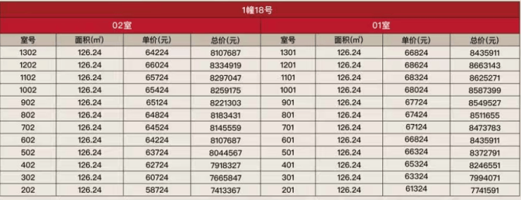 楼层方面,6层以上价格趋于稳定,每升高一层,单价递增约300元/㎡