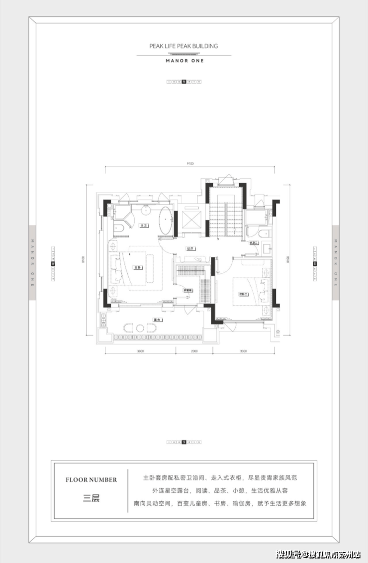 二三楼可以设计为次卧+次卫+超大套房的功能布局。套房中,放得下浴缸的卫生间和走入式衣帽间,才是「享受生活」的最佳标准。而南向的景观露台,则是赏花观景、沏茶品茗的私享天地。