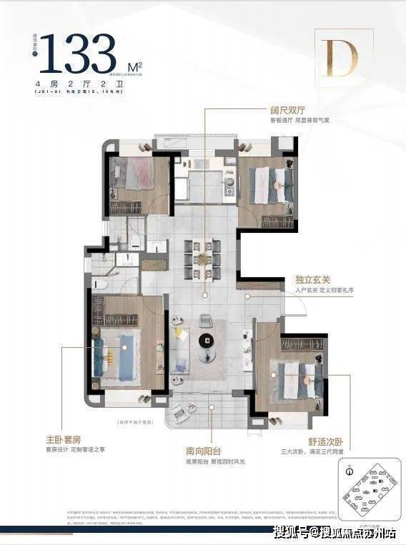 中建玖海云天售楼处预约电话:400-8123-664建筑面积约133㎡/143㎡四房两厅两卫,大开间,在满足空间感的基础上,增加户型的功能性,承载生活高舒适度;其中建筑面积约133㎡的四叶草户型,主卧套房设计,三代同堂各有私密天地;南向观景阳台,饱览阳光美景,双卫设计,提供更多私密空间与生活便利。中建玖海云天售楼处预约电话:400-8123-664