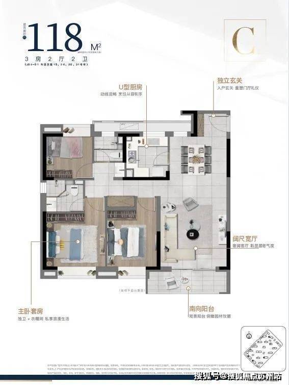 中建玖海云天售楼处预约电话:400-8123-664建筑面积约100㎡/118㎡三房两厅两卫,三口之家/三代同堂从容满足,南北通透外,餐客一体,动静分离居住舒适度更高,三开间朝南,三房全飘窗,日常在阳台上饲花弄草,生活将被赋予高仪式感。中建玖海云天售楼处预约电话:400-8123-664