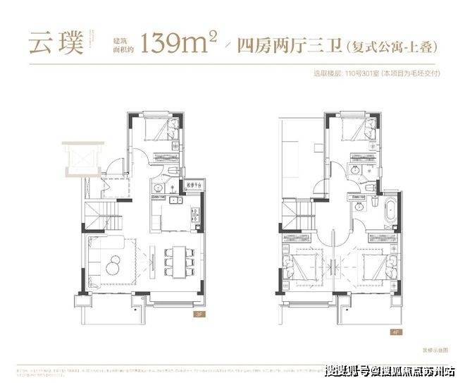 项目叠墅户型有建面约142㎡下叠,建面约139㎡上叠。
