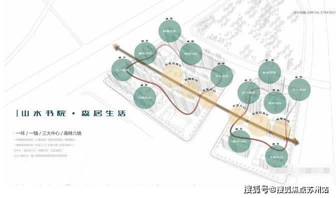 幸福源点:三中心为社区主入口、欢聚时光、社区会客厅、 人文六境为点,融入景观营造多维渗透式森活社区