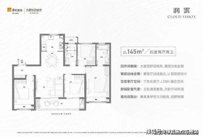 建面约145㎡的四房朝南户型,以大面宽、短进深,惊人的8个采光面,直接拉满空间的呼吸感,真正实现阳光平权。