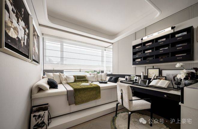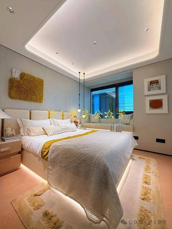 尺度MVP:约9米的宽幕贯通厅连接着超大的阳台,外滩天幕的繁华景色在这里成为日常;南向次卧为孩子的成长预留了足够的想象空间;北向房间面宽约 3.1米、进深约 4.15米(含 约60cm 宽景转角飘窗)的空间,彻底跳脱 “次卧即局促” 的刻板印象。无论是作为长辈房,还是书房,都能享受到与主卧同质的舒适 。