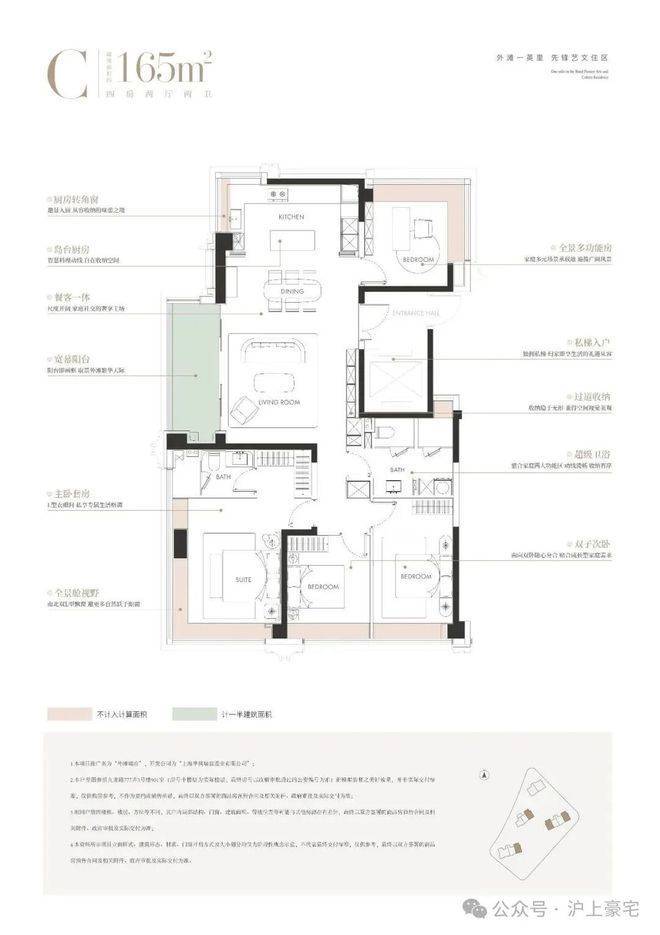 如果说124户型是上车外滩的难得机会,那么建面约165㎡户型,则完全是另一种进阶的气场——它是一部真正意义上的“内环MVP”,在功能、视野、尺度、颜值力求每一个维度的全能,让豪宅不止于豪!