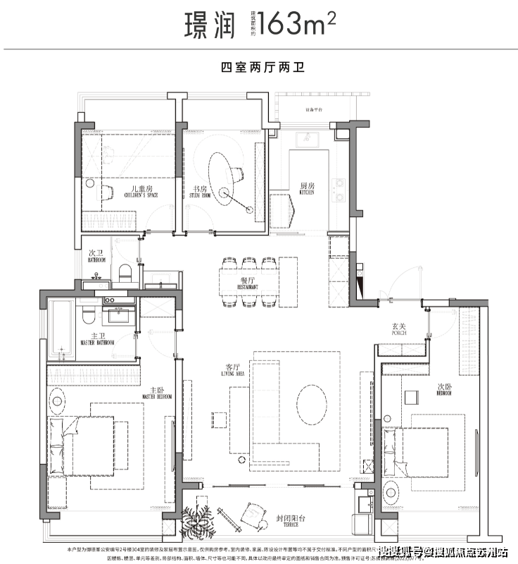 163㎡四房:总价约407-500万元,南向16.4m大面宽,9.2m宽境阳台