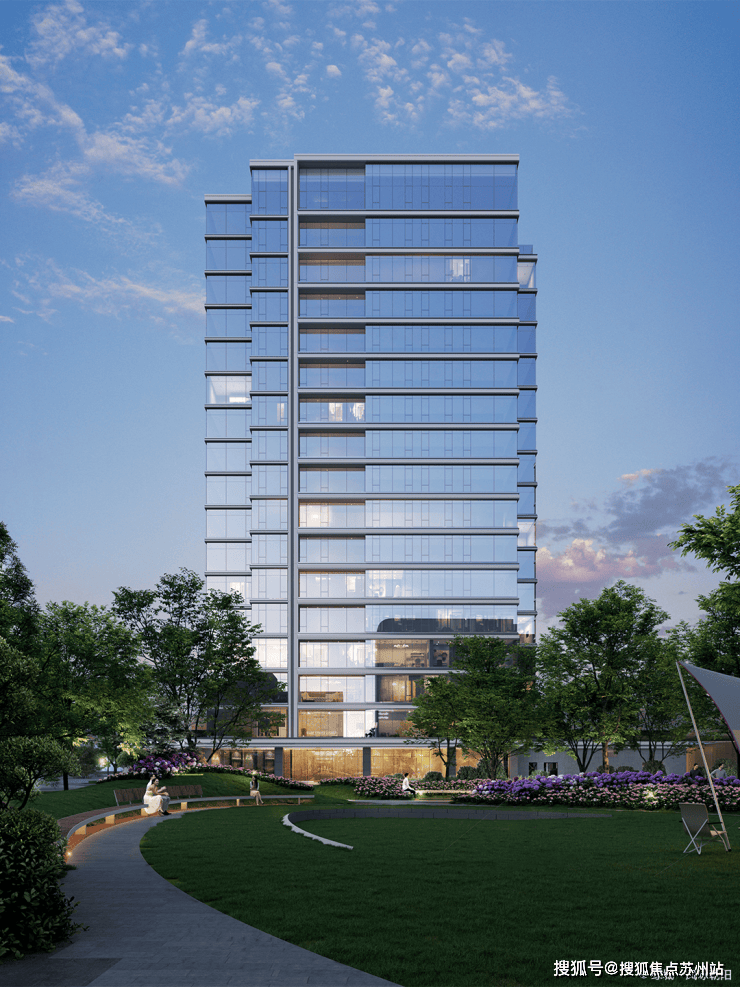 整个园区以围合式布局展开,七幢建筑借鉴中国古典园林的精髓,点状排布,最大楼间距达到了63米,使得每栋楼都能享受到270°的开阔视野,仿佛是一座座隐匿于花园中的岛屿。
