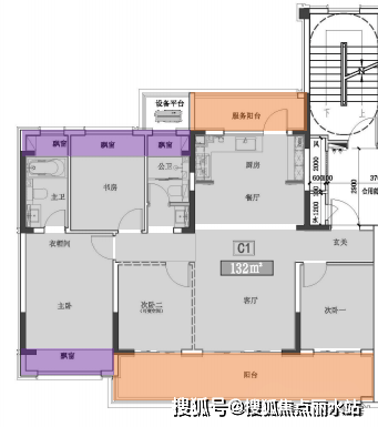 整体1梯2户,户型为4房2厅3卫设计,整体南向开间约14.3米;户型赠送很多,阳台、露台、飘窗都有;值得一提的东边户还打造了东向阳台,就有更好的观景视野了~