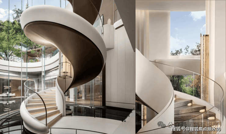 这种高级感也一直延续到公区,项目还打造了下沉庭院,从效果图来看,绿意十足~