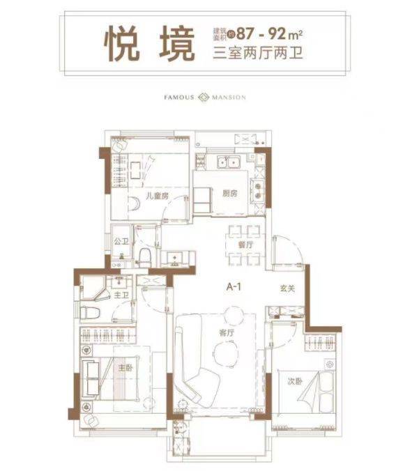 先来看看建面约87-92㎡三房,做到了双卫布局,能完美实现市面上“百平3房”的布局,紧凑户型+超强功能性,让买房人的钱都用在刀刃上!