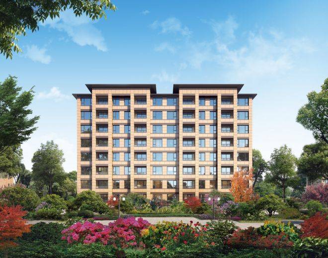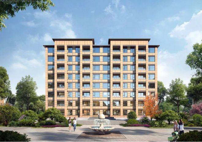 社区规划全8层纯花园洋房,外立面上,采用了真石漆、石材等材料,配合上LOW-E玻璃,在视觉上形成了大面积玻璃幕墙的效果。