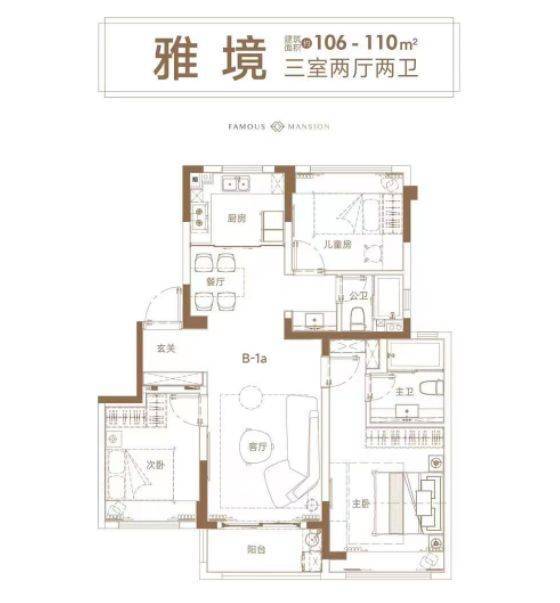 此外,项目还有建面约106-110㎡三房可供选择,户型图如下