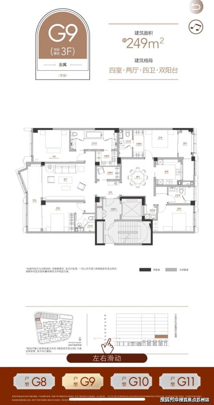 项目的平层户型无论是功能性还是尺度感都足以承载一个大家族的居住需求。十字中轴的布局,方正无比的格局,大开间朝南的设计都极大的保障了每一位家庭成员的私密性和舒适度!