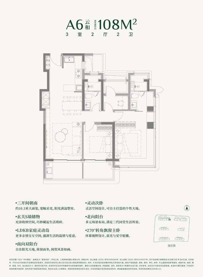 建面约108㎡3房的三阳台面积就高达约13㎡.(阳台仅附赠一半面积)