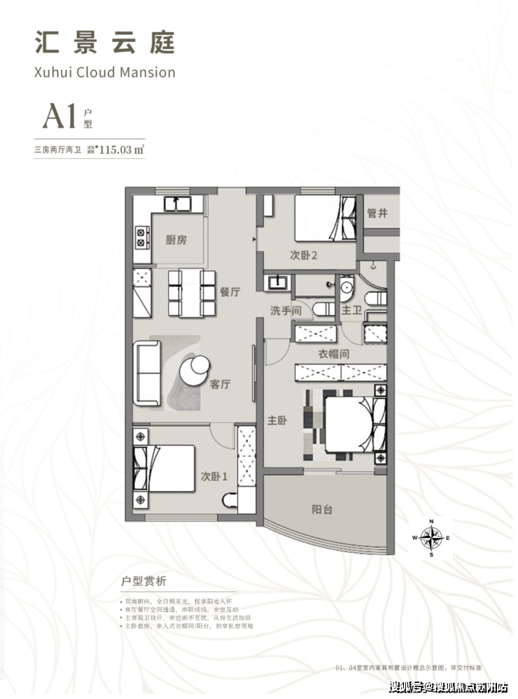 朝向:两南一北户型正,全日照采光,悦享阳光入怀
