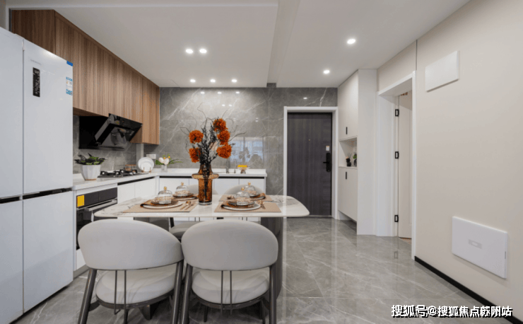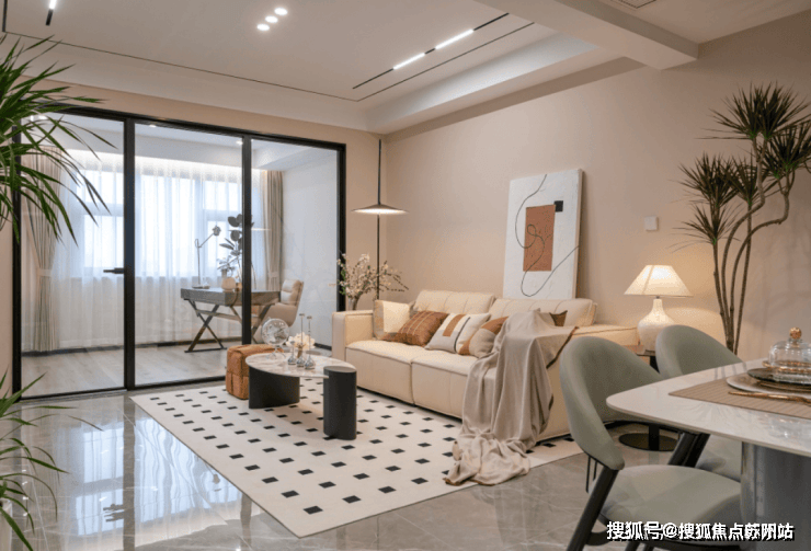 【客餐厅:温馨舒适的轻奢现代风格】客厅餐厅空间通透,串联成线,亲密互动,大金中央空调、德国威能锅炉地暖、诺贝尔品牌瓷砖