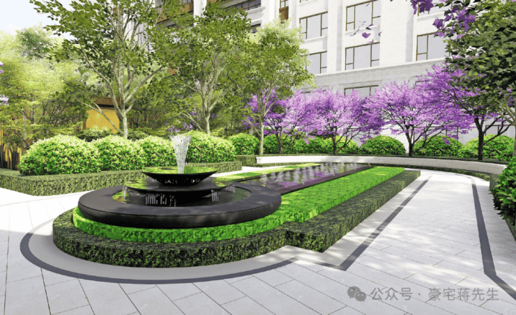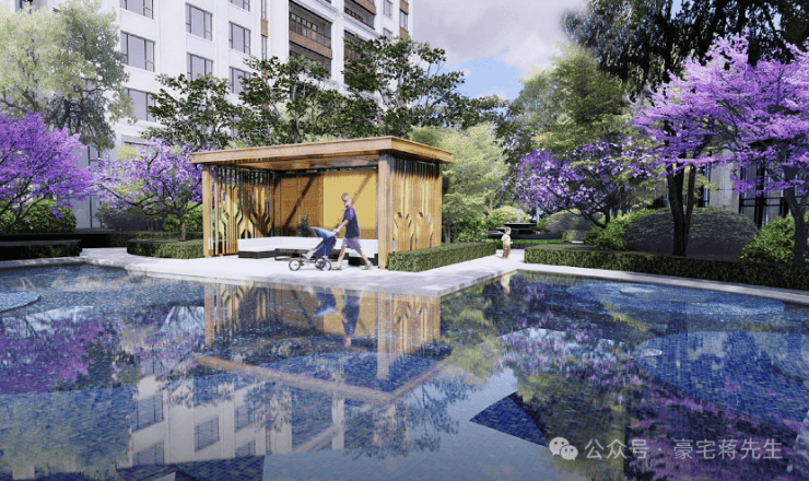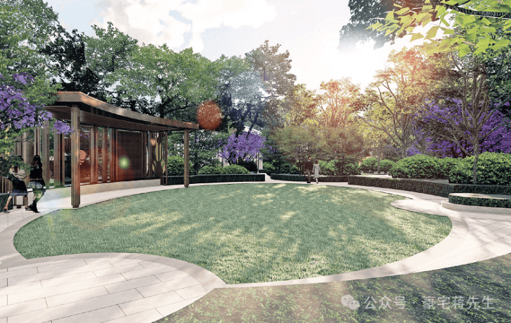 中央水系的右侧是约200平方超大草坪,业主可在草坪上沐浴阳光、嬉笑玩耍,寻求生活中的宁谧