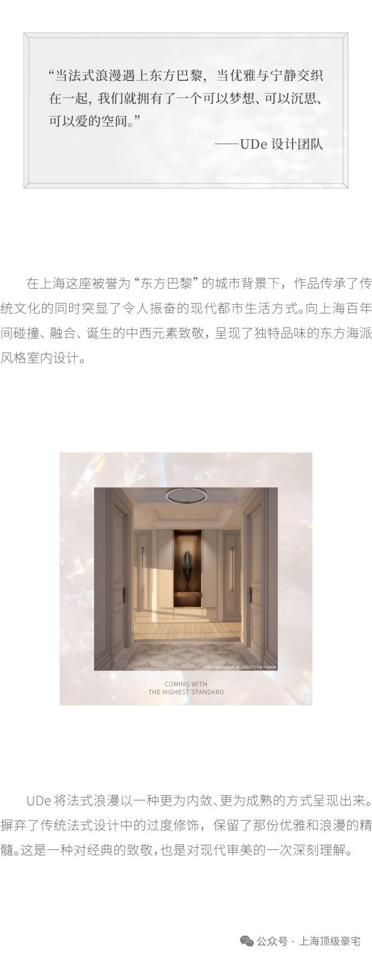 住宅部分全部大平层(复式)设计,单套面积约370-1500㎡,全部精装交付.