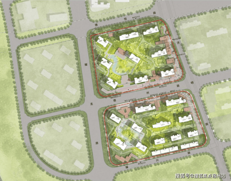下沉式庭院+会所将是项目最醒目的标签之一。用地图红线标注的庭院范围来看,其占地近地块总面积的1/4——按整个地块约4万方计算,下沉会所面积将近1万方。