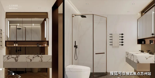 主卧东面采光,宽奢套房设计,独立卫生间双面盆设计,超大衣帽间配置;