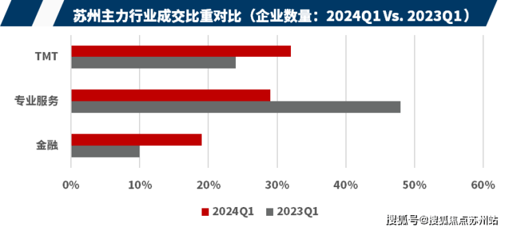 一季度整体成交数量和活跃度同比均有所下降。从成交行业结构来看,一季度TMT、专业服务、金融企业成交数量占比仍是苏州Top3,且三大产业的成交占比约八成。保险金融、咨询专业服务均有500-1000方以上整层大面积成交,其他行业本季度主要以小面积成交为主。受企业降低成本的策略影响,当前企业对于扩张、新设整体保持观望态度,本季度主要以同市企业
