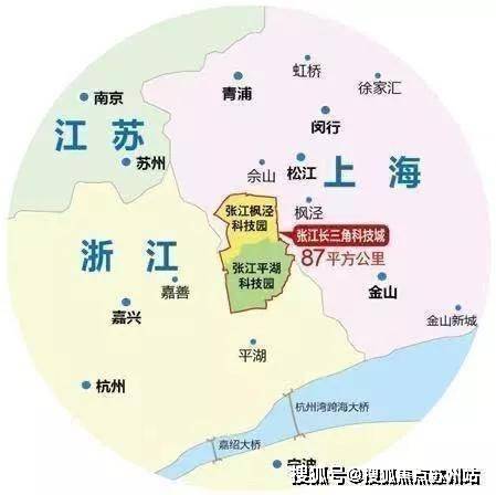 张江长三角科技城地跨上海与浙江两地,由张江国家自主创新示范区的张江金山园、张江平湖园共建而成。总规划面积87平方公里,平湖市境内45平方公里,枫泾镇境内42平方公里。目前一期启动区已于2018年投入运营,面积为7.1平方公里。