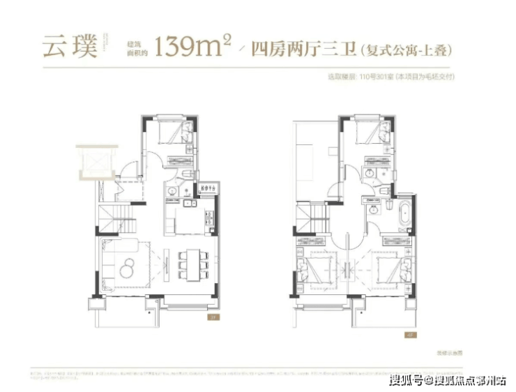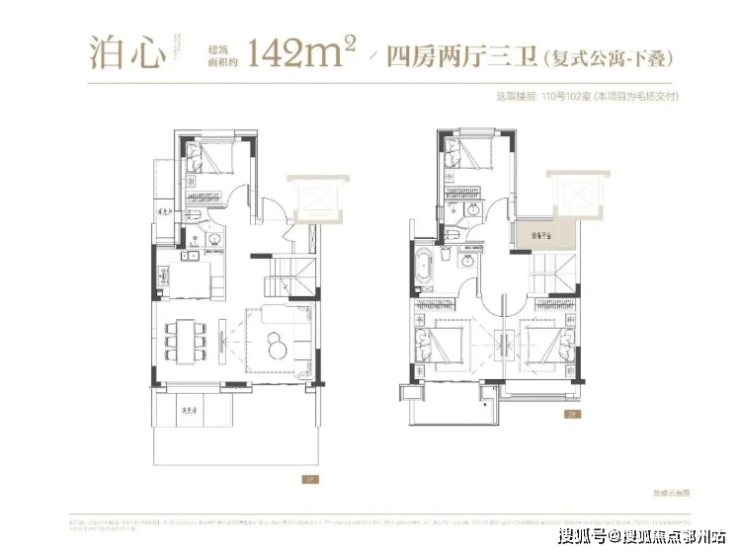 项目叠墅户型有建面约142㎡下叠,建面约139㎡上叠。