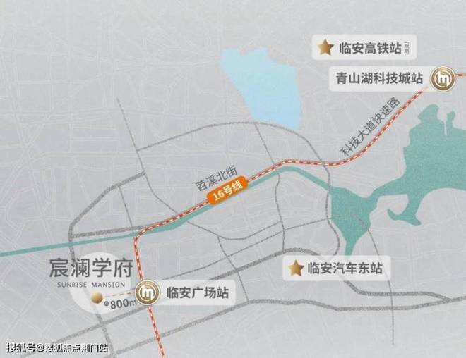 宸澜学府东面直线约800米,就是16号线的临安广场站,早上骑个共享单车,真的可以无缝对接地铁站口。