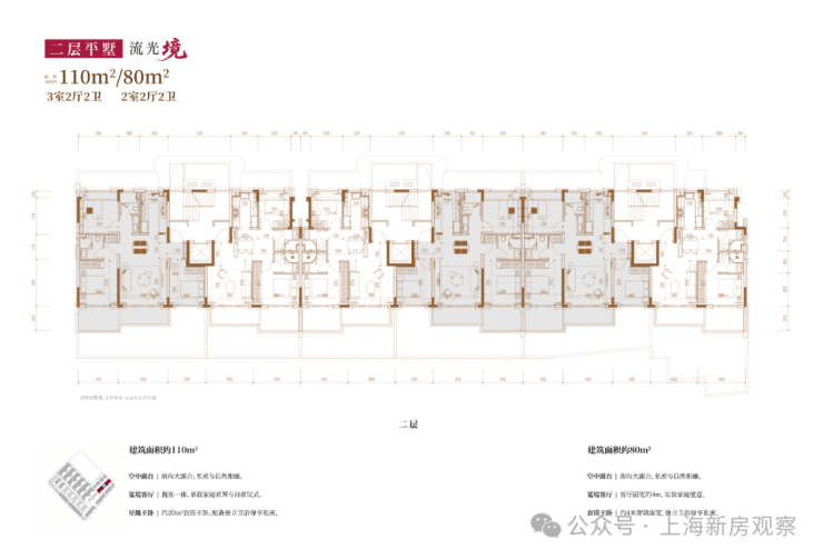 项目主打3层的超低密洋房产品,另有3套联排产品,户型类型丰富;洋房为创新的多层退台式洋房,层高高于传统常规洋房产品,3.3-3.6m层高对标别墅产品层高.