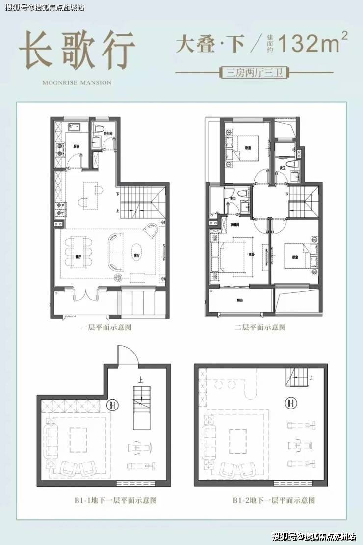 合院(毛坯):附带40-100㎡花园&地下室(层高5.3m),三楼有近15㎡露台。