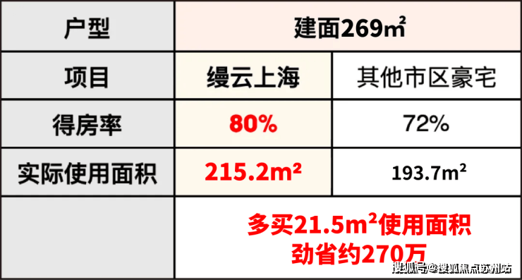 要知道,一般的市区豪宅得房率普遍在约72%左右(超高层会更低)。