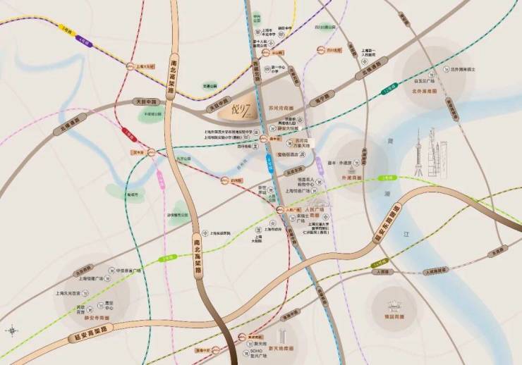 悦97位于静安区西藏北路海宁路,这里是苏州河与黄浦江交汇的“黄金三角”位置(苏河湾、人民广场、南京西路),享有苏河湾与南京西路两大繁华商圈的精粹资源。