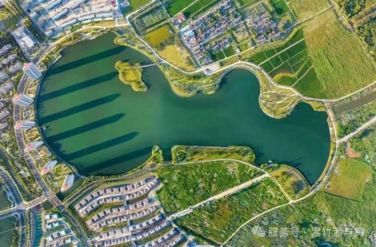 绿地景观沿黄浦江和兰香湖沿岸生长形成有序又自然的生态景观。