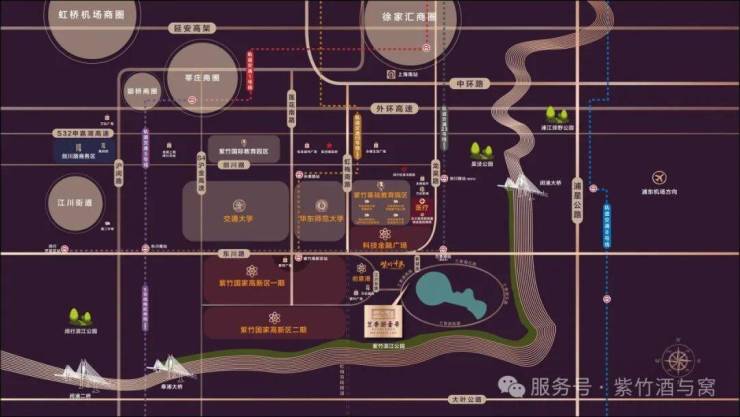 项目西侧是紫竹高新技术园区、北面是交大和华师大校园,以及紫竹基础教育园区,包含幼儿园至高中全龄段教育配套。