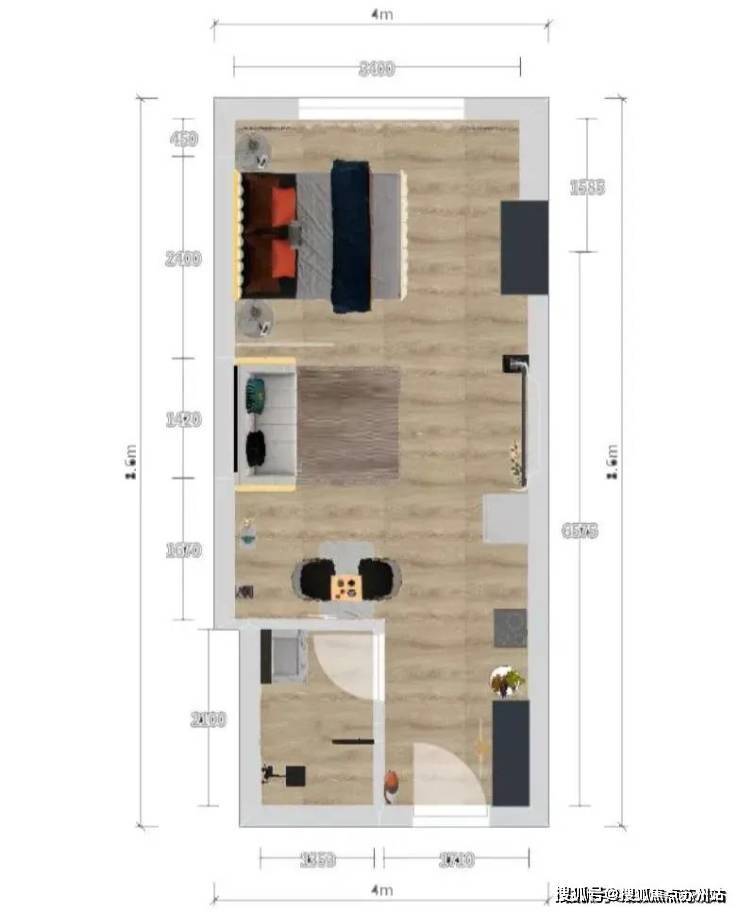 建面约44㎡户型图▼