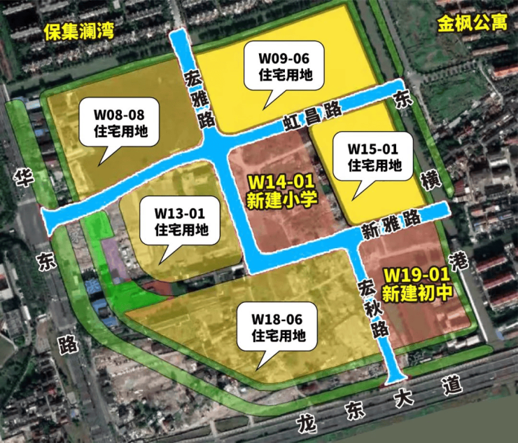 浦发虹湾项目周边规划有两块教育用地,一所小学和一所中学.