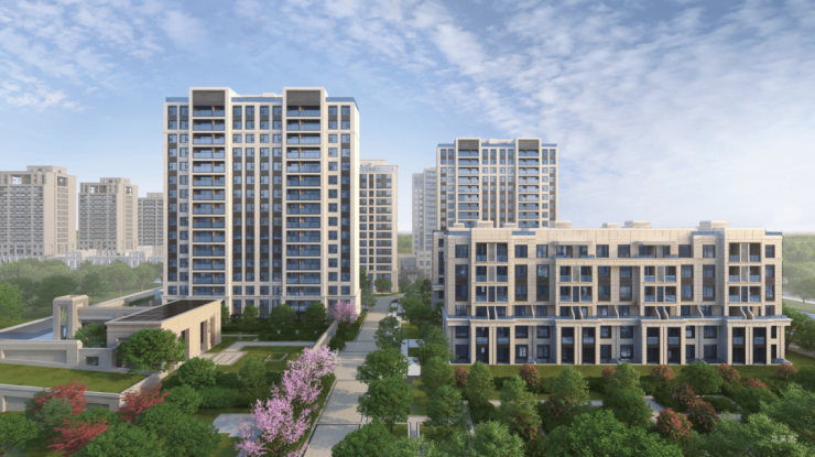 整个区域以九宫格的布局展开,涵盖了住宅+商业+教育配套,项目继承经典海派的建筑风格,通过外立面层次的打造和立面细节的打磨,使得小区外观更有现代感.