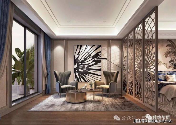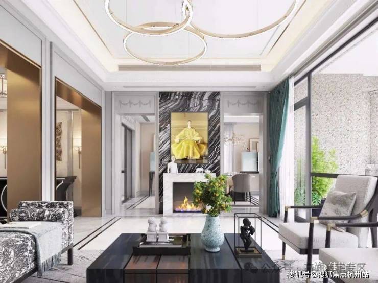 小区建筑设计以简欧风格为主,外墙干挂大理石,整体是浅米黄色调。四周采用铝合金断桥双层中空玻璃采光窗装饰和庄重石柱,为别墅的豪气程度增添色彩。样板房室内装修为轻奢和简欧混搭风格,自带高级感的设计元素彰显了住户的气质。