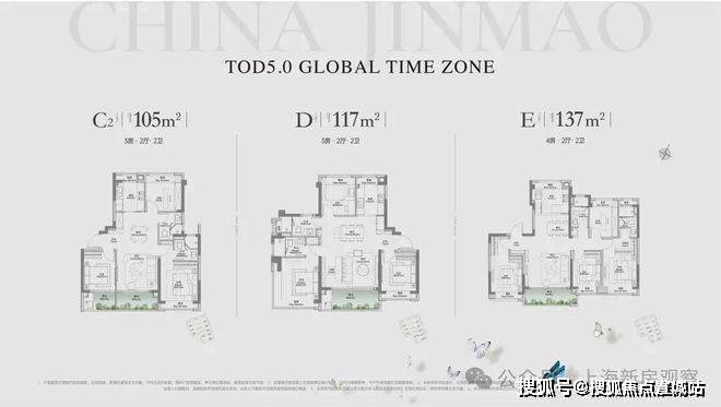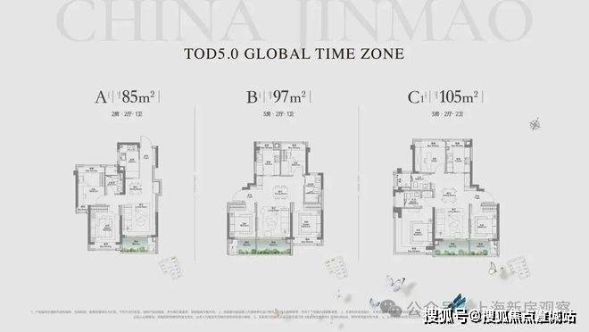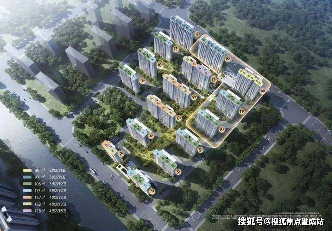 具体户型包含 85㎡2 室 2 厅 1 卫、97㎡3 室 2 厅 1 卫、105㎡3 室 2 厅 2 卫、117㎡3 室 2 厅 2 卫、137㎡4 室 2 厅 2 卫、152㎡4 室 2 厅 2 卫以及 178㎡4 室 2 厅 3 卫。